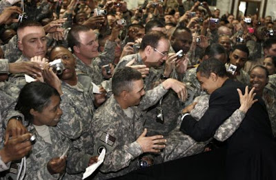 [T]hat wonderful cheering welcome that President Obama received with his unscheduled surprise visit to the troops in Iraq, was entirely a staged event.