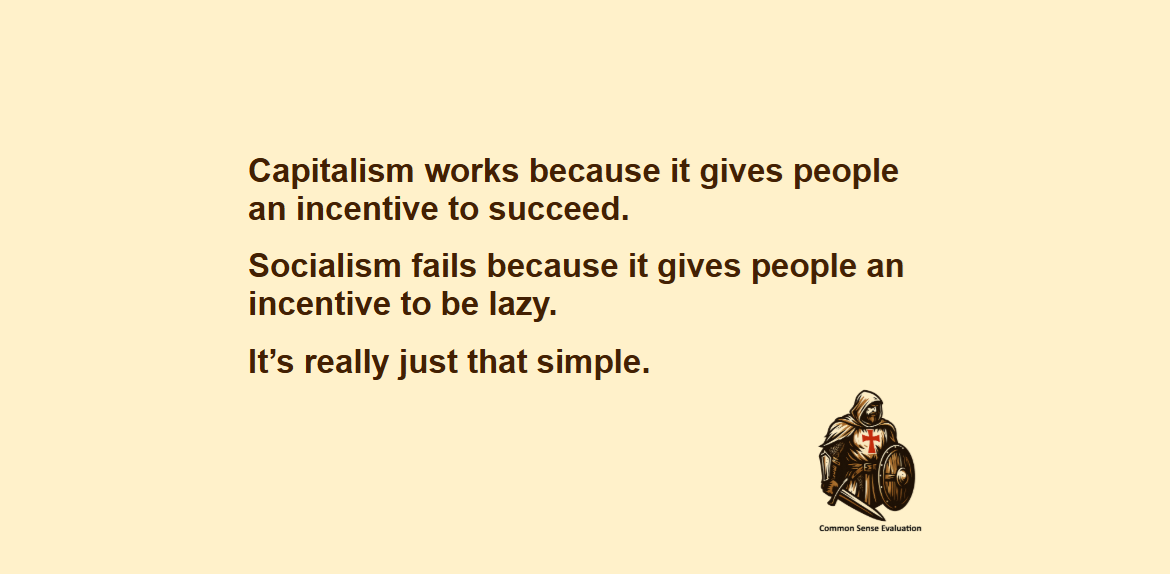 Capitalism vs Socialism Featured, Political, View Point Mar 202026 Capitalism works because it gives people an incentive to succeed. Socialism fails because it gives people an incentive to be lazy. It’s really just that simple. Sorry, the comment form is closed at this time.