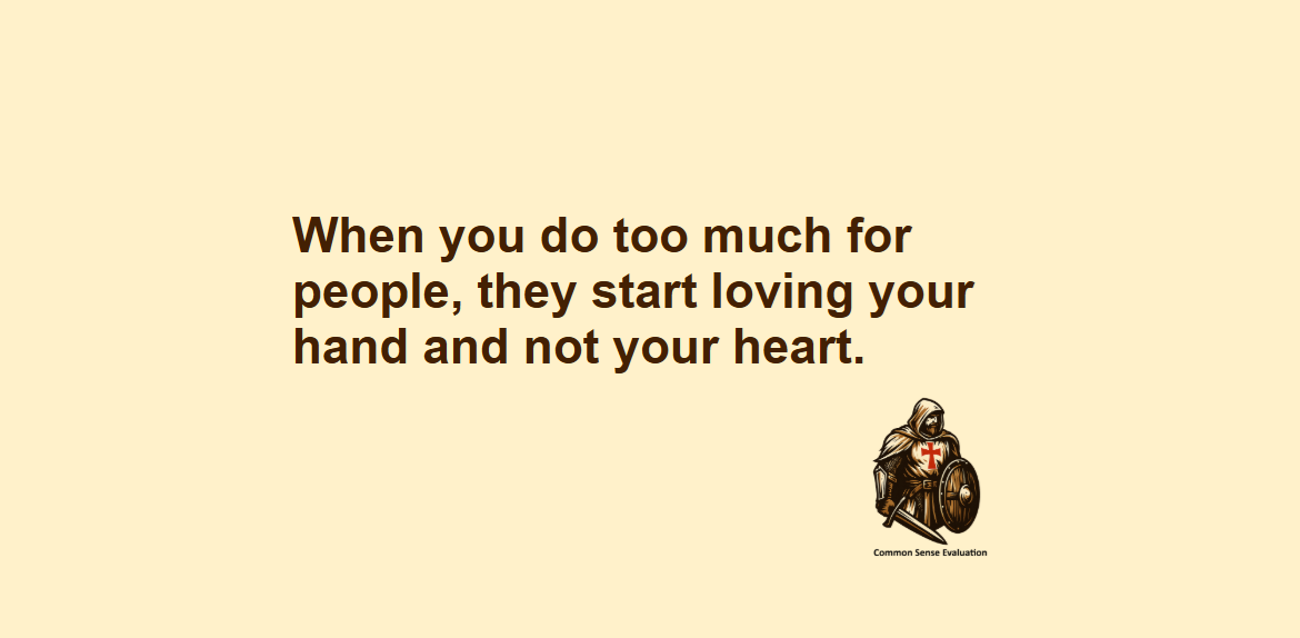 When you do too much for people, they start loving your hand and not your heart.