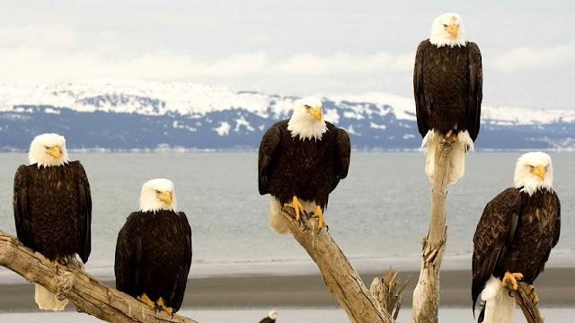 I had gone on a short errand and when I came home I found the cats hanging out with these 2 eagles. During the summer these same two eagles hang out on my porch about every day like it is their own private perch. They also have claim to the lamp post across the street from my house. I just happened to have my FlipVideo on me so I thought I would take a short video to show everyone that the eagles have no interest in eating my cats. The cats sometimes look at the eagles like they would love to catch that big bird but the cats know they don’t stand a chance to even try. Look at the video of Suitcase getting slapped by the eagle(that was the last time he tried to catch one). I have also been trying to figure out which eagle is the female and which is the male and I think the braver one that never flies away is the female and the smaller, more scared one is the male. They sit on the porch rail and watch me in my kitchen for hours! I love the sounds they make!