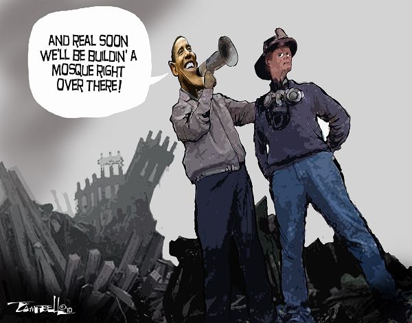 The effort to build one so close to Ground Zero demonstrates how obtuse and out of touch the political leadership is with mainstream Americans. The odious behavior of New York’s Mayor Michael Bloomberg is beyond comprehension. The President tipped his hand at a White House dinner held to celebrate Ramadan, backing away slightly the following day enough to deflect criticism.