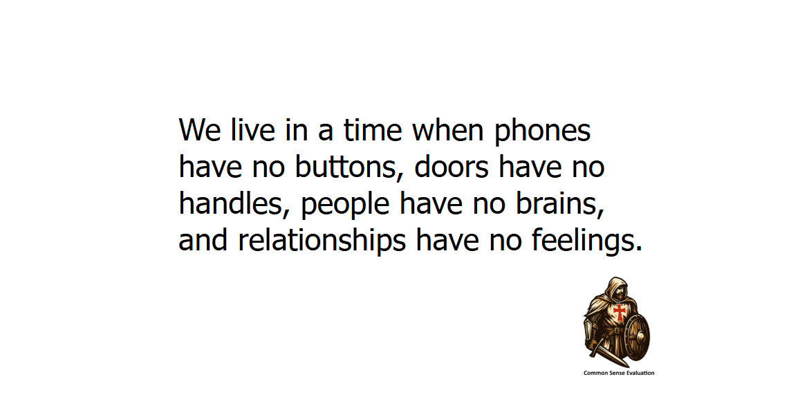 We live in a time when phones have no buttons, doors have no handles, people have no brains, and relationships have no feelings.