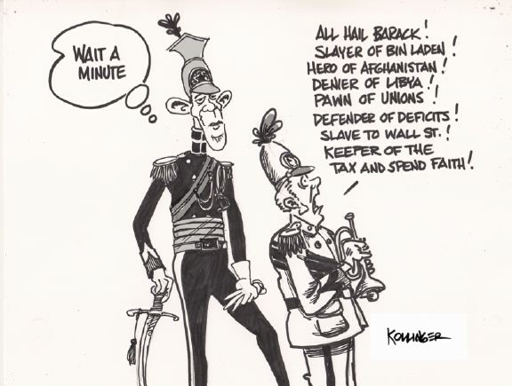Posted by gags at 5:09 am  Tagged with: Afghanistan, Barack Hussein Obama, Cartoon Of The Day, Deficit, Election 2012, King, Libya, Tax and Spend, Taxes, Unions, Wall Street
