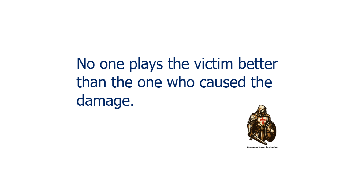 No one plays the victim better than the one who caused the damage.