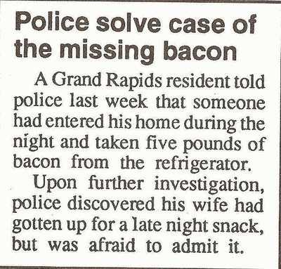 A Grand Rapids resident told police last week that someone had entered his home during the night and taken five pounds of bacon from the refrigerator.